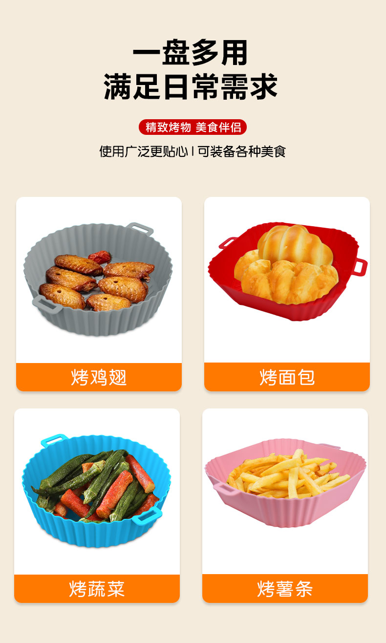 您的位置:首頁 > 產(chǎn)品中心 > 硅膠廚具用品 > 空氣炸鍋硅膠烤盤易清洗不粘油硅膠炸鍋墊可重復使用空氣炸鍋墊