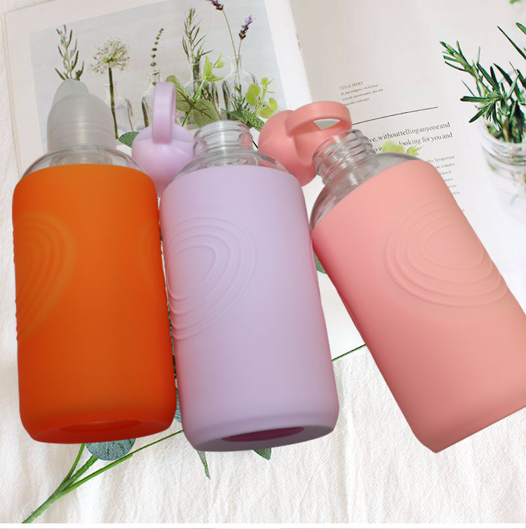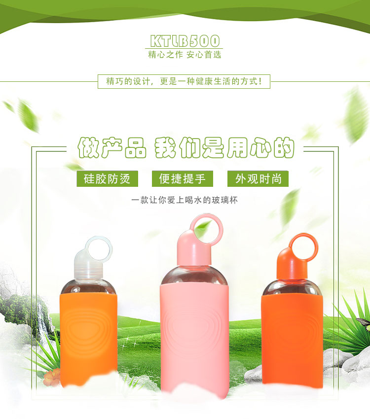 硅膠水杯禮品定制,時尚硅膠玻璃水瓶加工