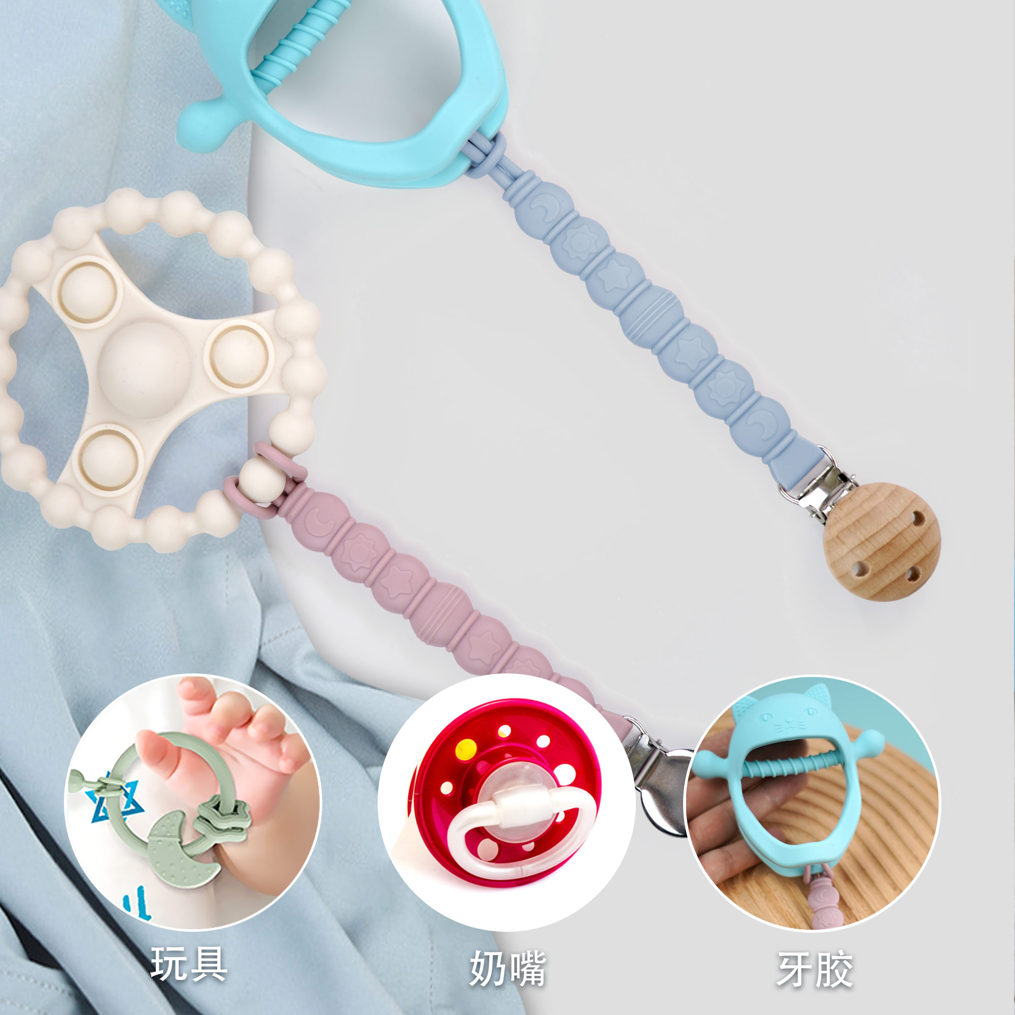 跨境安撫寶寶牙膠 防掉鏈硅膠奶嘴鏈 嬰兒食品級(jí)可水煮防掉鏈牙膠