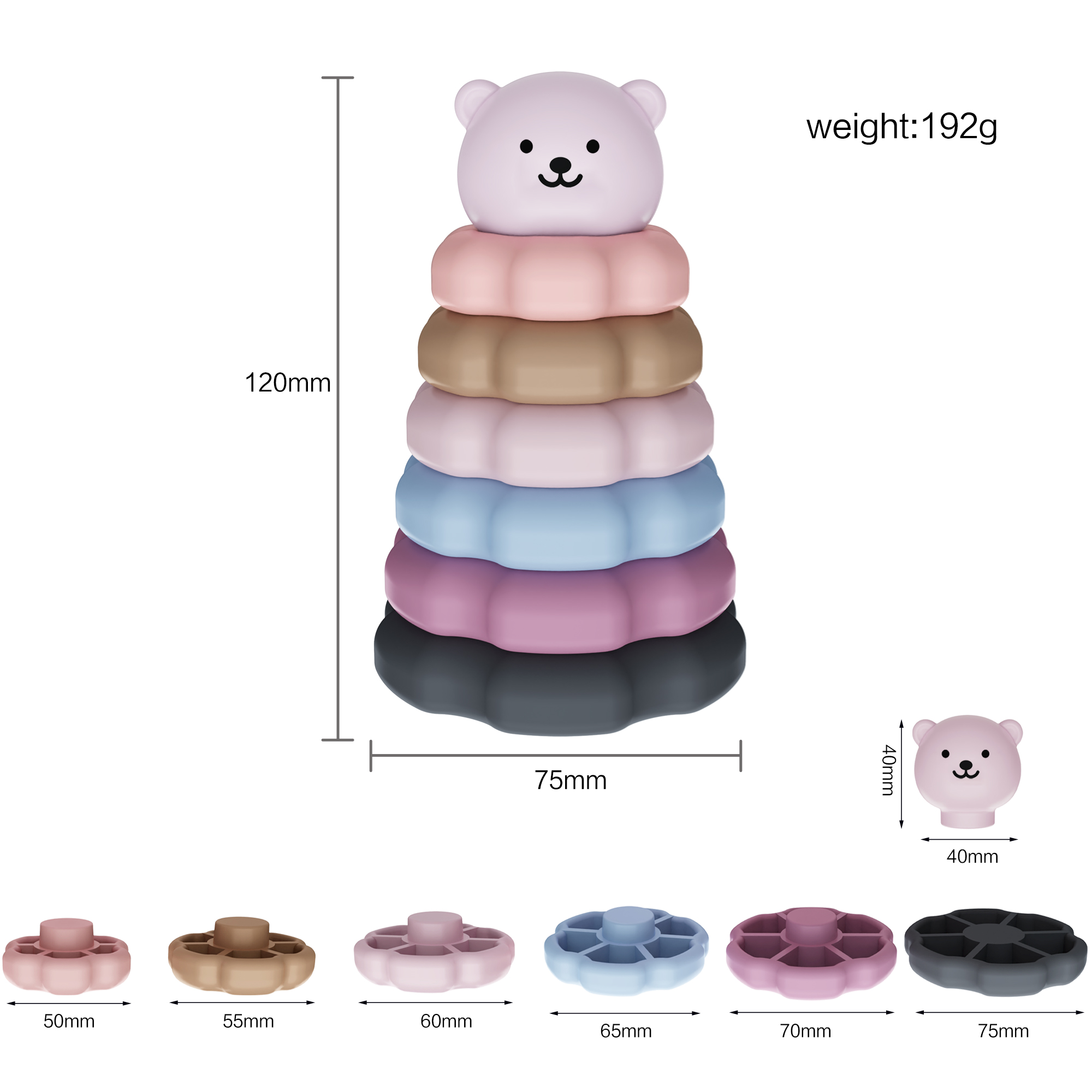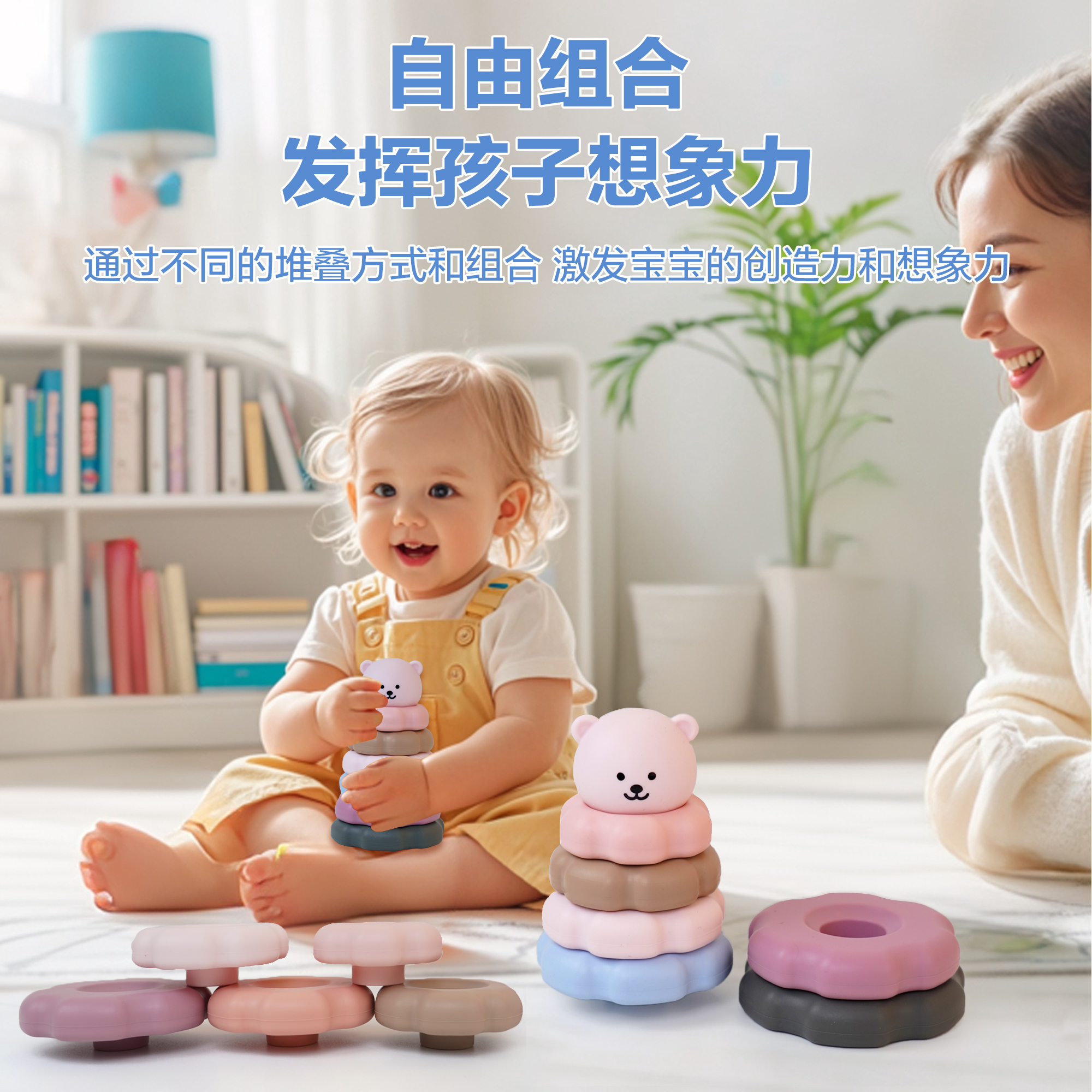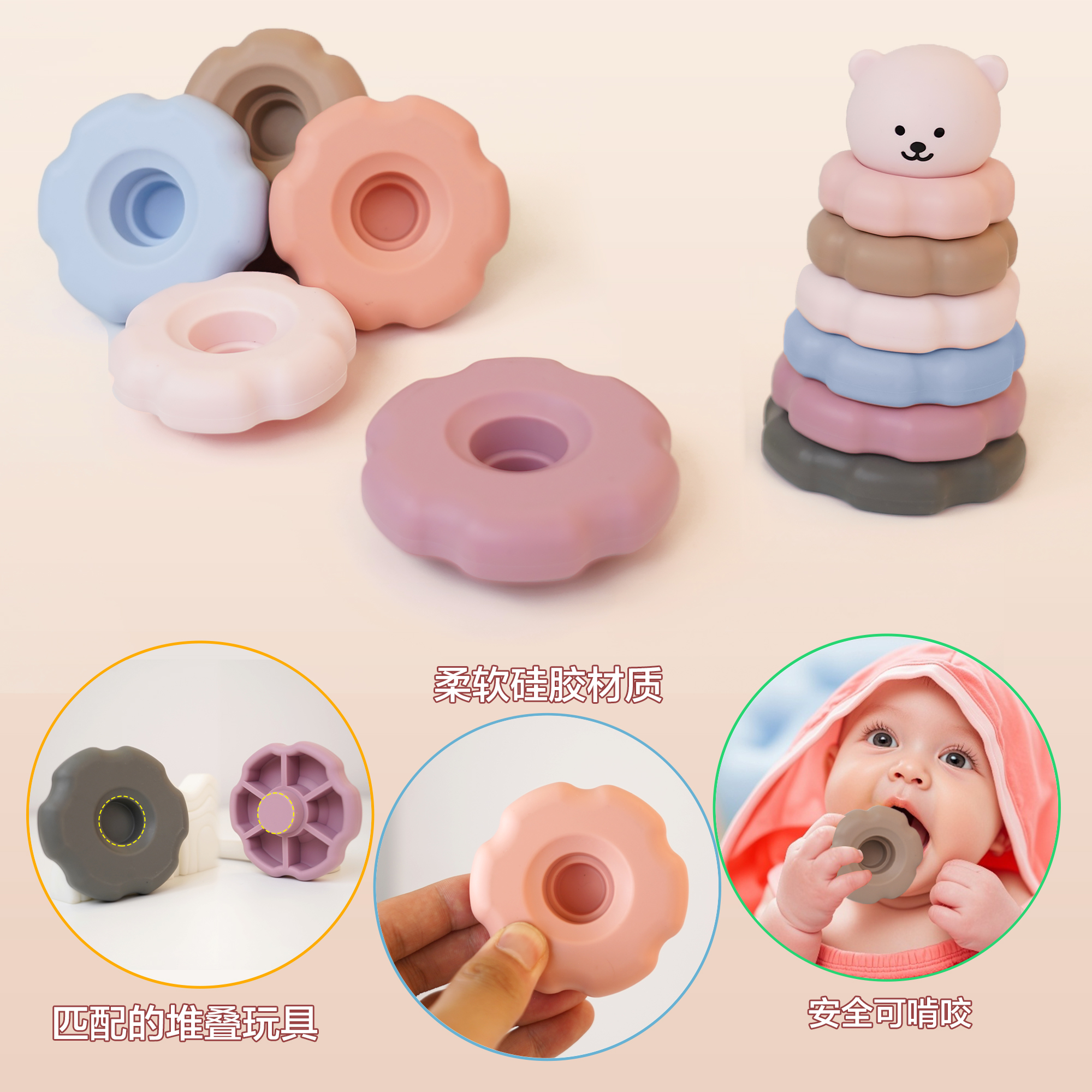 3-6歲寶寶益智硅膠疊疊樂六瓣花早教益智玩具硅膠積木
