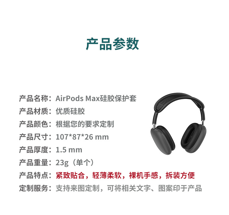 產(chǎn)品名稱: | 適合蘋果AirPods Max藍(lán)牙耳機(jī)硅膠保護(hù)套 |