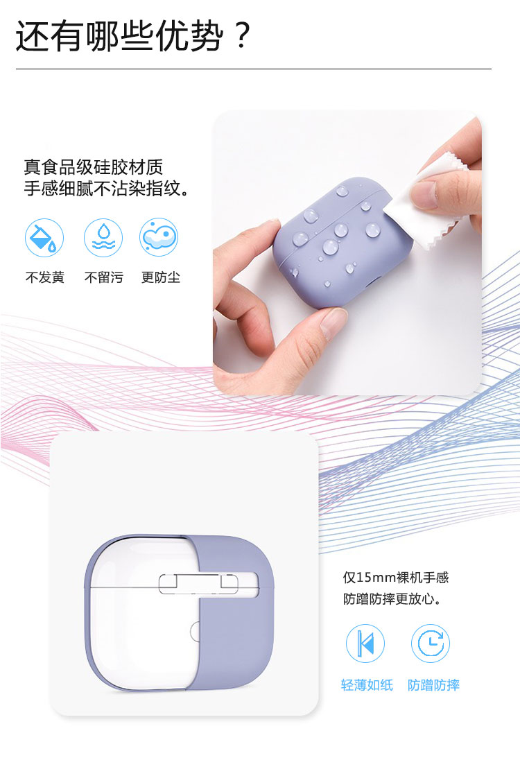 產(chǎn)品特點:環(huán)保材質(zhì) 親膚硅膠 輕薄舒適 全包防摔 防污去漬 經(jīng)久耐用