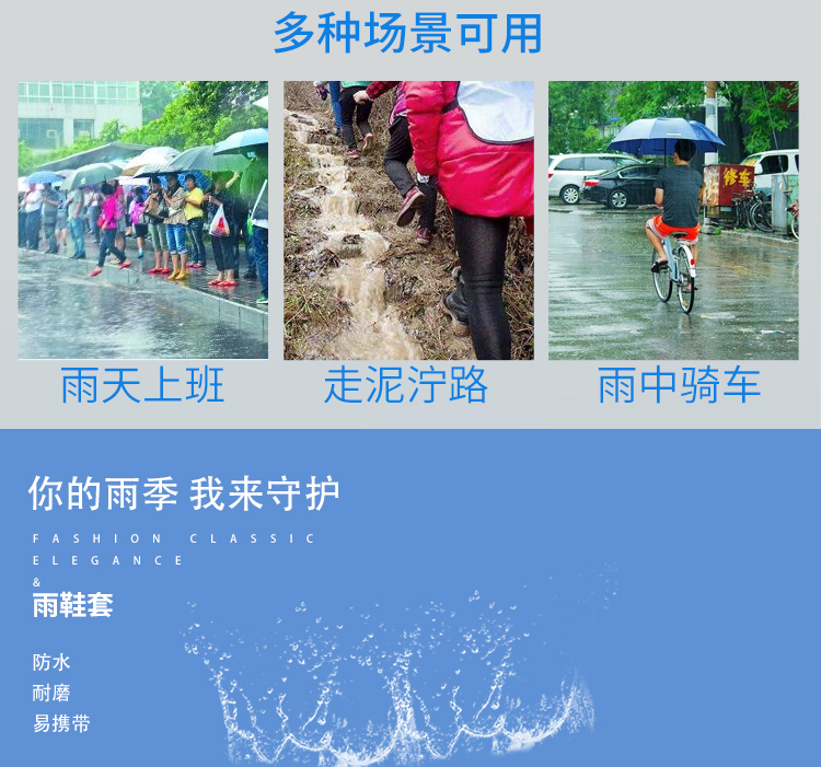 硅膠防水鞋套是為雨天出行設(shè)計的便利生活用品。采用硅膠材質(zhì),尺碼可選。有效隔絕雨水和地面積水打濕鞋子。近年來越來越受到消費(fèi)者歡迎。