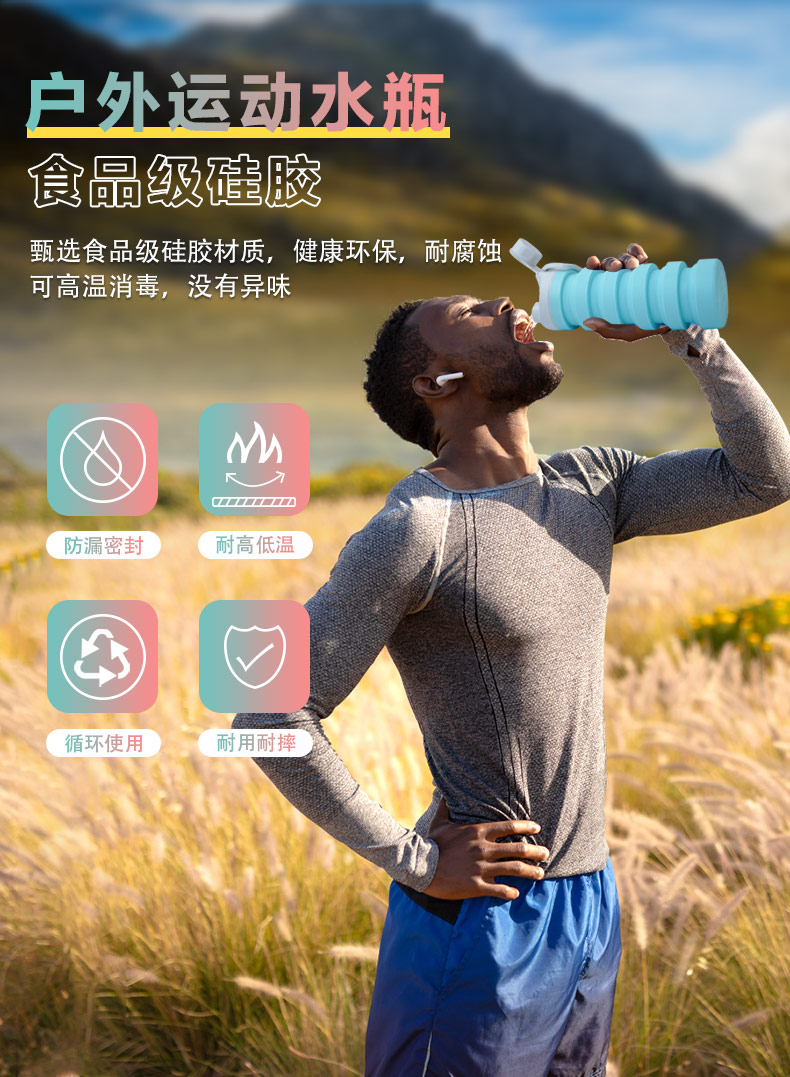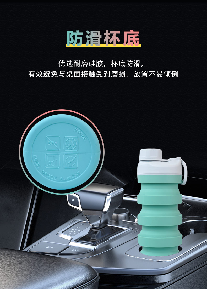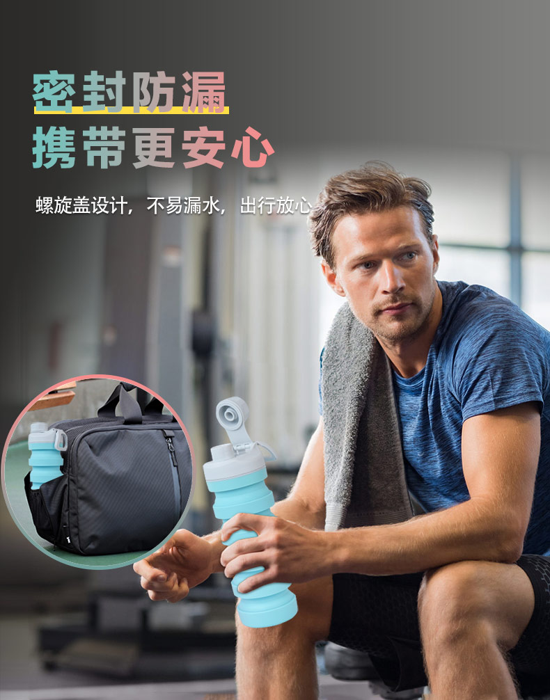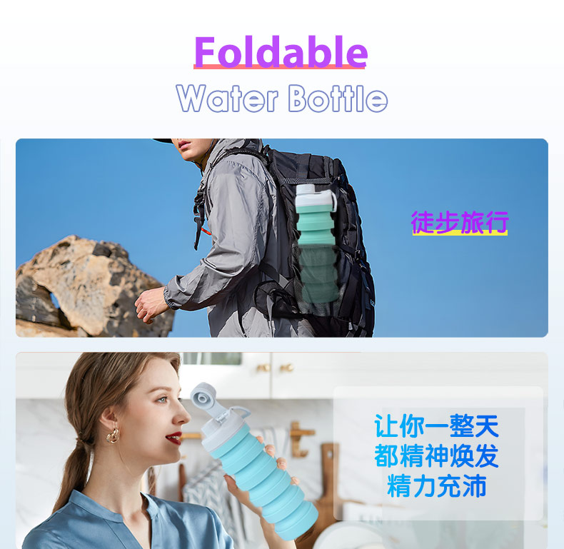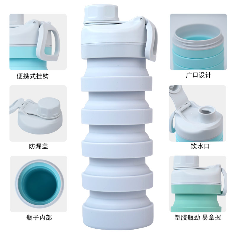 用途:食品級材質(zhì),不含BPA,可伸縮折疊,不占空間,抗摔 耐壓,耐熱抗冷,多色可選,時尚健康